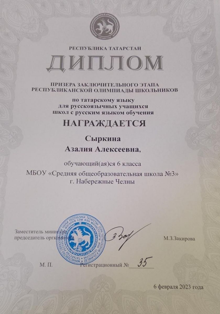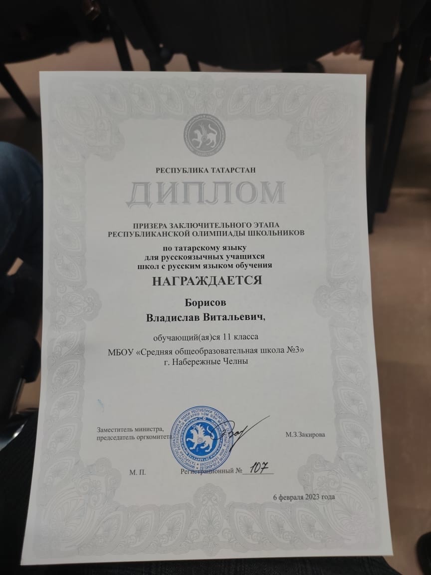 Поздравляем с удачным выступлением в заключительном этапе республиканской олимпиады школьников по татарскому языку для русскоязычных учащихся школ с русским языком обучения города Набережные Челны!