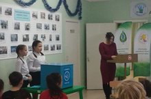 Лидеры экологического движения на защите проекта «Важность контейнера для сбора мусора», в рамках городской программы «Зеленая эстафета».