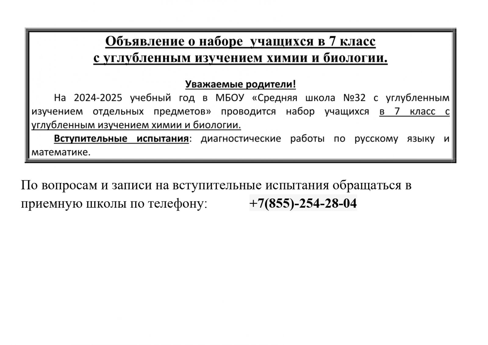 МБОУ «Средняя общеобразовательная школа №32 с углубленным изучением отдельных предметов» г. Набережные Челны - новости