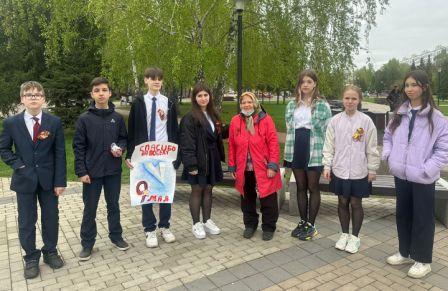 26 апреля 2024 года отряд 7 А класса «Лидеры» под руководством классного руководителя Галеевой Ляйсан Изгатовны принял участие во Всероссийской акции «Георгиевская ленточка» в рамках проекта «Самостоятельные дети», которая проходила на бульваре Энтузиастов. Во время проведения акции, обучающиеся раздавали прохожим георгиевские ленточки. Всего раздали 85 ленточек. Цветовая гамма представляет собой двухцветную ленту. Цвета ленты - черный и оранжевый -означают «дым» и «пламень» и являются знаком личной доблести солдата. Разноцветные ленты, как символ Победы, должны напоминать о героизме участников Великой Отечественной войны. Это символ- не награда, это выражение уважения к ветеранам, дань памяти павшим на поле боя, благодарность людям, связи поколений и воинской славы.