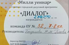 24 января 2025 года в центре детского творчества 16 «Огниво» состоялся очередной этап городской досуговой программы «Диалог», посвященный национальным играм народов Поволжья. Ученики 7-8 классов под руководством Богдановой М.М. и Галеевой Л.И. приняли участие и заняли второе место. Молодцы! Поздравляем! 24 нче гыйнвар көнне 16нчы Балалар иҗат үзәгендә «Диалог”дип аталган шәһәр программасының өченче этабы узды. Ул Идел буе халыклары уеннарына багышланган иде, квиз -уен формасында уздырылды. 7,8 нче сыйныф укучылары икенче дәрәҗә дипломга лаек булдылар. Афәрин! Котлыйбыз!