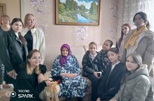 Активисты нашей школы совместно с Советником директора по воспитанию Савиной Н. В. в рамках Дня Добра и уважения посетили Минниханову Марьям Миннихановну.