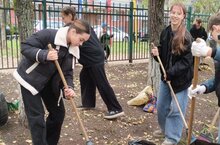 Пока стоит сухая погода, наши ребята убирают листья на территории школы. Вчера 5г постарался на славу. Молодцы!