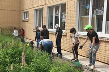 На территории школы идет активная работа. Все ребята совместно с учителями благоустраивают и убирают территорию.