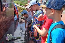 Наши ребята из 6 отряда почтили возложили цветы и почтили память минутой молчания.