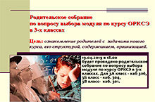 19.04.2019 в 18.00 Родительское собрание по вопросу выбора модуля по курсу ОРКСЭ в 3-х классах 11.04.2019
