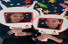 Сегодня в школе настоящий космодром. И об этом говорит оформление, поделки и конечно же фотозона.