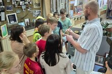 Сегодня наши ребята из пришкольного лагеря "Солнечный город" побывали на интерактивной выставке в ДК Камаза. С Валентиной Петровной сделали открытки " БлагоТвори" и побывали на шоу Профессора Николя. На линейку к концу дня пришли из городской библиотеки поздравить ребят, хорошо выступивших на викторине. А также начальник лагеря вручила грамоту за наблюдательность и решительность вожатому Баскакову Арсению.