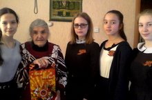 Учащиеся 8в класса поздравили с наступающим праздником - 9 мая - Днем Победы и вручили вдовам участников Великой Отечественной войны подарки!
