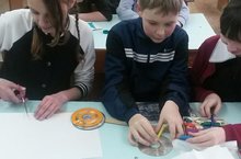 Учащиеся 5б класса, занимаясь в кружке по экологии "ЭКО", готовятся ко второму этапу эколого-познавательной игры "Зеленая эстафета". Одним из заданий является создание проекта "Будущий родник в нашем городе". В разработке проекта дети используют различный материал - бумагу, диски, пластелин - и конечно же свою фантазию! Так держать!