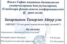 На базе 55 школы прошла ll региональная научно-практическая конференция, посвященная творчеству писателя Факиля Сафина. Поздравляем ученика нашей школы Закирзянова Тамерлана с достойной победой. Благодарим педагога Рузилю Флюровну за подготовку учащегося.