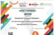 По итогам Всероссийского творческого конкурса "Күңел түреннән" учитель родного языка школы Минсадыкова Рузиля Флюровна и ученик 3 Б класса Закирзянов Тамерлан стали лауреатами по номинации "Лучший исполнитель лирики собственного сочинения".