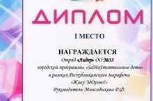 Поздравляем учащихся 8 Б класса, участников ГП "СМС - дети" с успешным участием и победой в Республиканском антинаркотическом марафоне " Живу ЗдОрово". Спасибо всем классам за содействие.