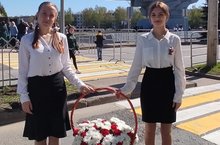 Возложение корзины цветов от имени нашей школы к мемориалу "Родина-мать" 09.05.2022