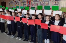 2А,3А,3Б сыйныф укучылары"Туган ягыбызның флагы" флешмобында катнаштылар.