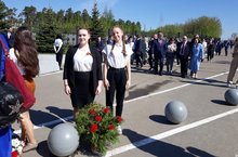 Учащимся 9А класса Двиняниновой Надежде и Закировой Азалии удостоина честь возложение цветов у мемориала "Родина-мать" от нашей школы и посмотреть парад, посвященный 76-летию Победы!!!