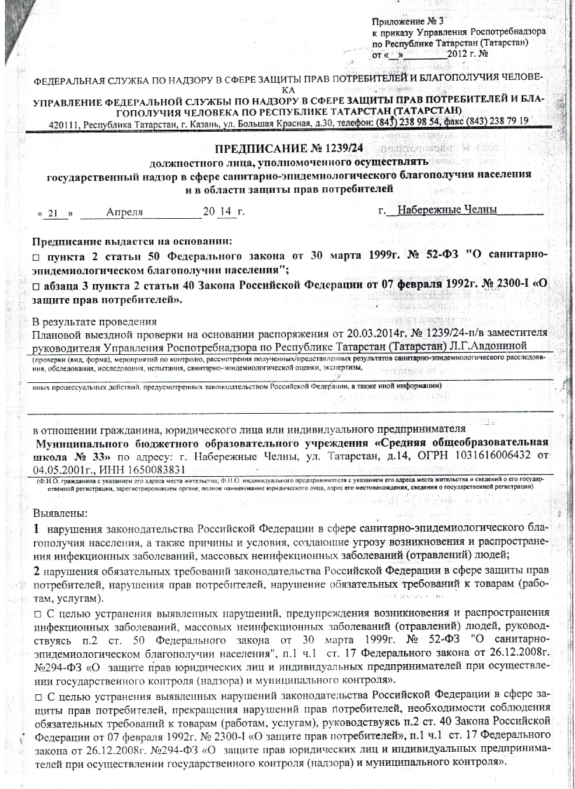 Федеральная служба по надзору в сфере защиты прав потребителей и благополучия человека.