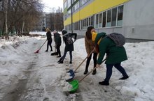Хотя и за окном весна, снег не оступает. Даже во время каникул ребята заботятся о чистоте школьной территории.
