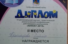 Поздравляем Краснопёрову Эмилию, занявшую 2 место в VI региональной научно- практической экологической конференции для младших школьников "Юннат-2019". Желаем дальнейших творческих успехов!