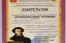27 марта в МАОУ "Лицей № 78 им.А.С.Пушкина" города Набережные Челны Республики Татарстан состоялись Х Всероссийский открытый творческий конкурс «Пушкинские чтения». Учащаяся 10Б класса Новикова Софья награждена дипломом 2 степени. Благодарим учителя русского языка и литературы Сорокину Л.Д. за подготовку призера.