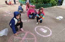 В школе прошёл конкурс рисунков на асфальте "Мы против наркотиков!" Ребята цветными мелками нарисовали красочные рисунки, в которых выразили своё отношение к наркотикам.