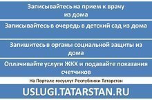 В настоящее время на Портале государственных и муниципальных услуг Республики татарстан (далее-Портал)uslugi.tatarstan.ru доступна возможность в получении следующих государственных услуг:- запись на прием к врачу;- услуги в сфере жилищно-коммунального хозяйства: получение счетов-фактур, ввод показаний счетчиков, оплата услуг;- подача заявлений на предоставление земель многодетным семьям, регистрацию брака, регистрацию рождения ребенка, регистрацию смерти, регистрацию расторжения брака;- подача заявлений на выдачу повторных свидетельств, справок об актах гражданского состояния;- подача заявления на постановку в очередь в детский сад;- запись на прием к специалисту в органы соц.защиты;- просмотр и оплата государственных и дополнительных услуг детского сада;- электронный дневник: просмотр оценок ребенка;Более подробную информацию о преимуществах получения электронных услуг можно получить из информационных листовок и видеороликов