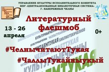 13 апреля Централизованная библиотечная система при поддержке управления культуры города Набережные Челны запускает литературный флешмоб #ЧелнычитаютТукая#ЧаллыТукайныукый, приуроченный ко дню рождения татарского поэта Габдуллы Тукая. Флешмоб является виртуальным, в нем могут принять участие все желающие.