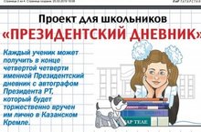Уважаемые ученики и их родители! В целях формирования привлекательного образа современного педагога и повышения мотивации к получению знаний среди школьников Республики Татарстан Министерством образования и науки Республики Татарстан совместно с представительством газеты «Комсомольская правда» в Республике Татарстан объявлен проект «Президентский дневник» (далее – Проект).
