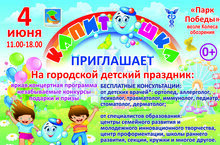04 июня 2022 года с 11.00 до 18.00 в парке культуры и отдыха Победа состоится праздник «Капитошка». В программе: концерт, конкурсы, детская игровая развлекательная программа от Набережночелнинского цирка, консультации от детских врачей и специалистов образования.Приглашаем всех желающих!