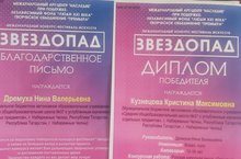 Поздравляем Дремуху Нину Валерьевну с подготовкой победителя Кузнецовой Кристины, ученицы 9г класса в Международном конкурсе-фестивале искусств ЗВЕЗДОПАД.