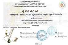 Ученик 5 О класса Зартдинов Рузилҗ (Руководитель Лилия Рашитовна) занял 1 место в I региональном конкурсе стихотворений "Мәктәп - белем учагы". Администрация школы выражает Вам глубокую признательность за ваше профессиональное мастерство, педагогический талант, целеустремленность и кропотливый труд в воспитании и обучении подрастающего поколения.