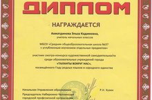 Ахматдинова Эльза Кадимовна, учитель начальных классов, участник смотра-конкурса художественной самодеятельности среди образовательных учреждений города "ТАЛАНТЫ ВОКРУГ НАС", посвященному Году родных языков и народного единства. Поздравляем!