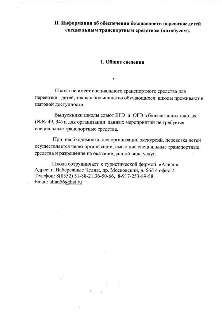 Информация об обеспечении безопасности перевозок детей специальным траспортным средством (автобусом)