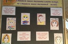 К празднику мам оформлены пять стендов. Каждый ученик приготовил для нее рисунок, вкладывая в него свою любовь и нежность.