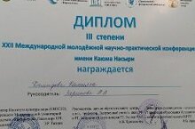 Яшел Үзән шәһәрендә үткәрелгән Каюм Насыйри исемендәге XXII Халыкара яшьләр фәнни-гамәли конференциясендә призлы урын алган укучыларыбызны котлыйбыз! Сафин Арслан-II урын, Вәгыйзова Әминә- III урын, Демидова Камилла- III урын.В Зеленодольске прошла XXII Международная молодёжная научно-практическая конференция имени Каюма Насыйри (очное участие). Сафин Арслан- II место (рук. Халиуллина Г.В), Вагизова Амина и Демидова Камилла (рук.Зарипова Р.В.) заняли III места. -