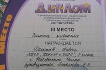 Поздравляем ученика 1в класса Данилова Павла, занявшего III место в V Региональной научно-практической