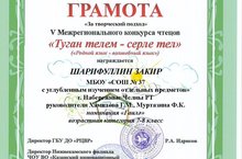 Поздравляем ученика 7а класса победившего в V Межрегиональном конкурсе чтецов «Туган телем – серле тел».Руководители Хамитова Г.М., Муртазина Ф.К. -