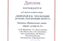 28 февраля в Центральной городской библиотеке состоялось награждение участников и призеров городского конкурсного проекта, квест-игры «Мой край родной: чем больше думаю, тем больше берегу», посвященный 100-летию со дня рождения ТАССР. Учащиеся 7а класса награждены дипломом за I место. Молодцы, ребята! Так держать! Руководитель Хамитова Г.М. -