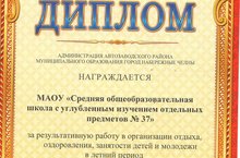 коллектив МБОУ "СОШ №37 с углубленным изучением отдельных предметов" за результативную работу в организации отдыха, оздоровления, занятости детей и молодежи в летний период.