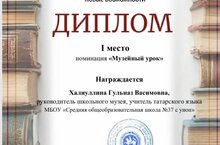 Прошел республиканский конкурс методических разработок по реализации образовательного потенциала школьных музеев « Новые возможности», Халиуллина Гульназ Васимовна награждена дипломом победителя в номинации «Музейный урок». Поздравляем Гульназ Ввсимовну. Котлыйбыз!