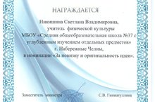 Мы поздравляем учителя физической культуры Никишину Светлану Владимировну за победу в номинации "За новизну и оригинальность идеи" в Республиканском этапе Всероссийского конкурса "Учитель здоровья России" Желаем в дальнейшем творческих и профессиональных успехов.