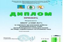 Награждается МБОУ "СОШ №37" за хорошую организацию работы муниципального конкурса акции по сбору отработанных источников тока