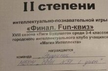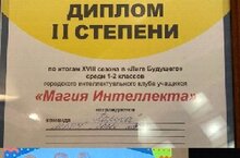 По итогам 18 сезона «Лиги будущего» городского интеллектуального клуба учащихся "Магия Интеллекта"команда 4В класса заняла 2 место (кл.рук. Мешковец О. А.)