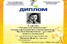 В городском Дворце творчества детей и молодежи в рамках городской программы “Сокровища Татарстана”, в конкурсе под названием “Подвиги Мусы Джалиля – бессмертны” приняли участие ученица 2В класса Папова Яна, ученик 5а Шакирзянов Ильхан и были награждены дипломами 1 степени. В течение февраля учащиеся изучали биографию, жизненный путь, творчество Мусы Джалиля. Готовили выступления в разных жанрах. Подвиг Мусы Джалиля вызвал у учащихся творческое вдохновение.