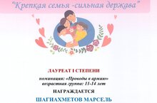 Подведены итоги муниципального этапа Республиканского конкурса «Крепкая семья – сильная держава». Участие принял ученик 7п класса Шагиахметов Марсель в номинации «Проводы в армию» и стал лауреатом 1 степени. Руководитель Сахабетдинова Л.А.«Көчле гаилә – көчле держава» республика конкурсының муниципаль этабына нәтиҗәләр ясалды. 7 п сыйныфы укучысы Шаһиәхмәтов Марсель «Армиягә озатулар» номинациясендә катнашты һәм 1 дәрәҗә лауреат дипломына лаек булды. Җитәкчесе: Сәхабетдинова Л. А. -