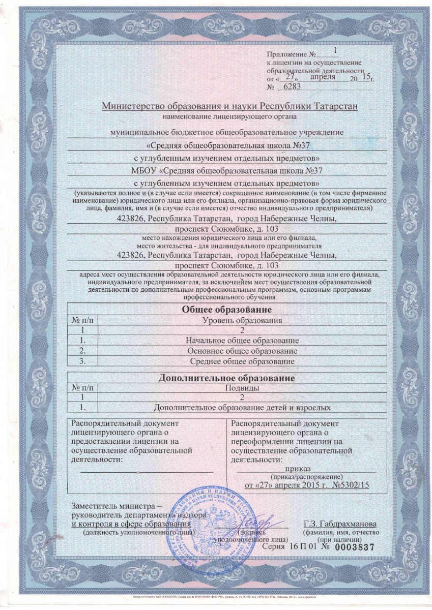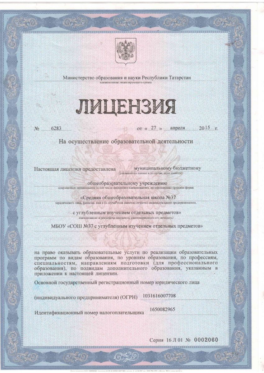 МБОУ «Средняя общеобразовательная школа №37 с углубленным изучением отдельных предметов» г. Набережные Челны