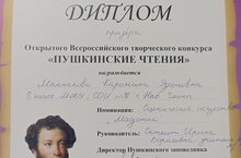 Ученица 8б класса Маннапова Каролина сегодня стала призером Всероссийского конкурса "Пушкинские чтения".