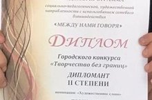 В рамках городской программы "Между нами говоря" ученики 5В класса участвовали в конкурсе "Творчество без границ". Награждены дипломами: