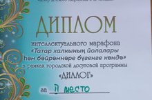 25 октября 2021 года в МАУДО «ЦДТ №16 «Огниво» в рамках досуговой программы «Диалог» был проведён 1 тур городского конкурса “Татар халкының йолалары һәм бәйрәмнәре бүгенге көндә” / “Традиции и обычаи татарского народа в наше время”. По итогам конкурса команда (Хайбрахманова Дина, Сафина Карина, Зиганшина Аделя) заняла 2 место. Поздравляем ! (Руководитель Гараева М.М., учитель родного языка и литературы).