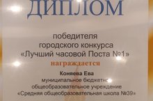 По итогам несения Вахты Памяти ученица 10 "А" класса Коняева Ева признана "Лучшим часовым Поста № 1" и награждена поездкой в Санкт-Петербург (город - герой Ленинград)